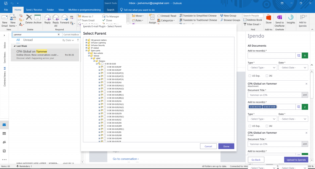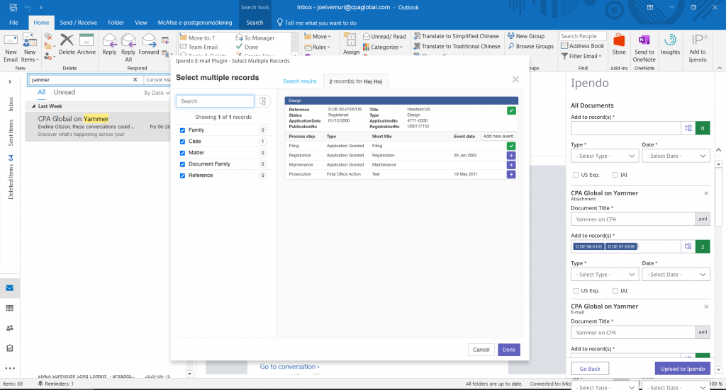 Australian corporate law firms do not have seamless experience that handles the end-to-end work flow of IPLC (Intellectual property Life Cycle). Docketing is one of the important functionality that integrates multiple systems (Email, Patent Office data and firm data), which has been missing in the landscape of IP software.