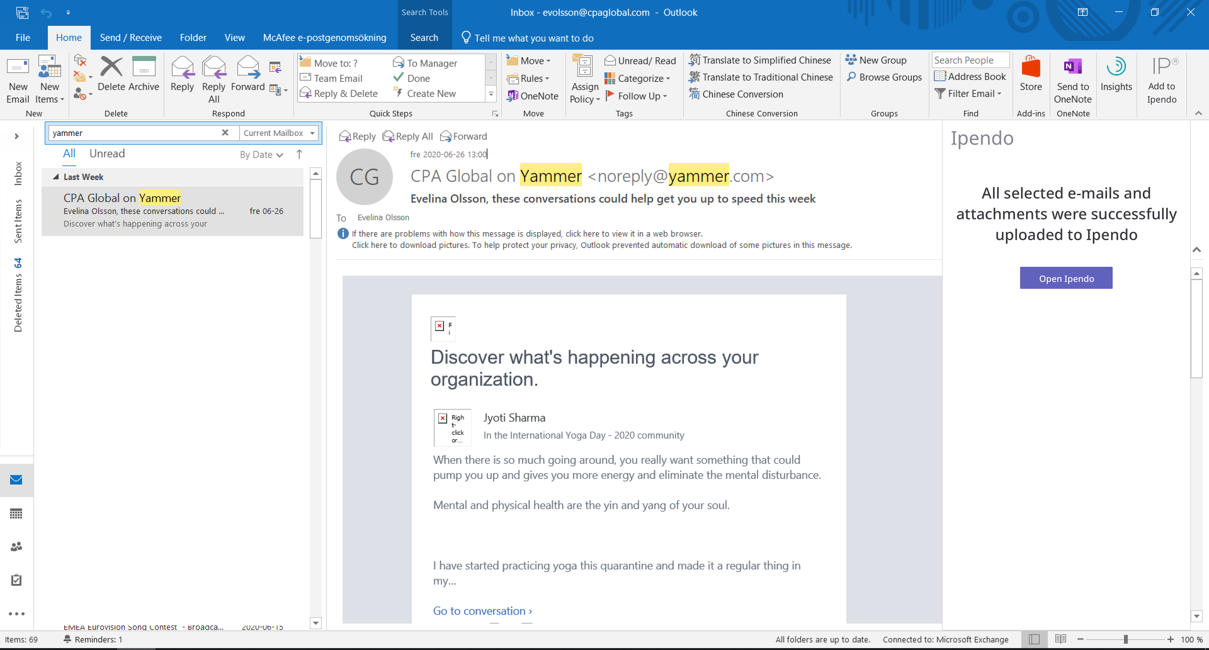 So upon usability tests a 93% of users (14 of 15 users) found that a new design of Email integration (Outlook plugin) was very easy to navigate and achieved the objective of