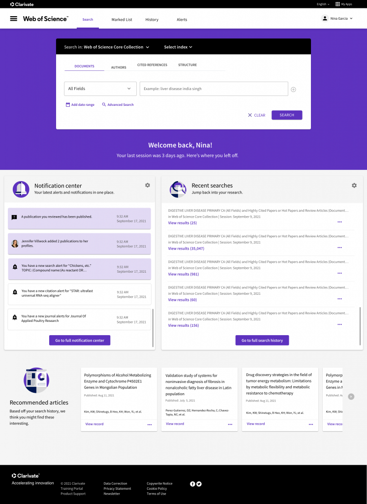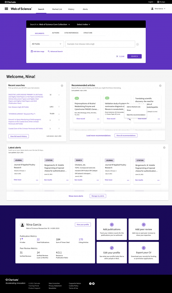 The One Profile project incorporates a lot of new design changes and user experiences to Web of Science.